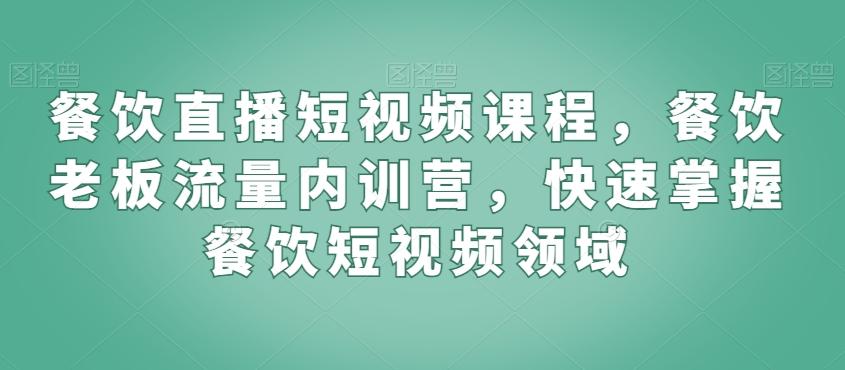 餐饮直播短视频课程,餐饮老板流量内训营,快速掌握餐饮短视频领域